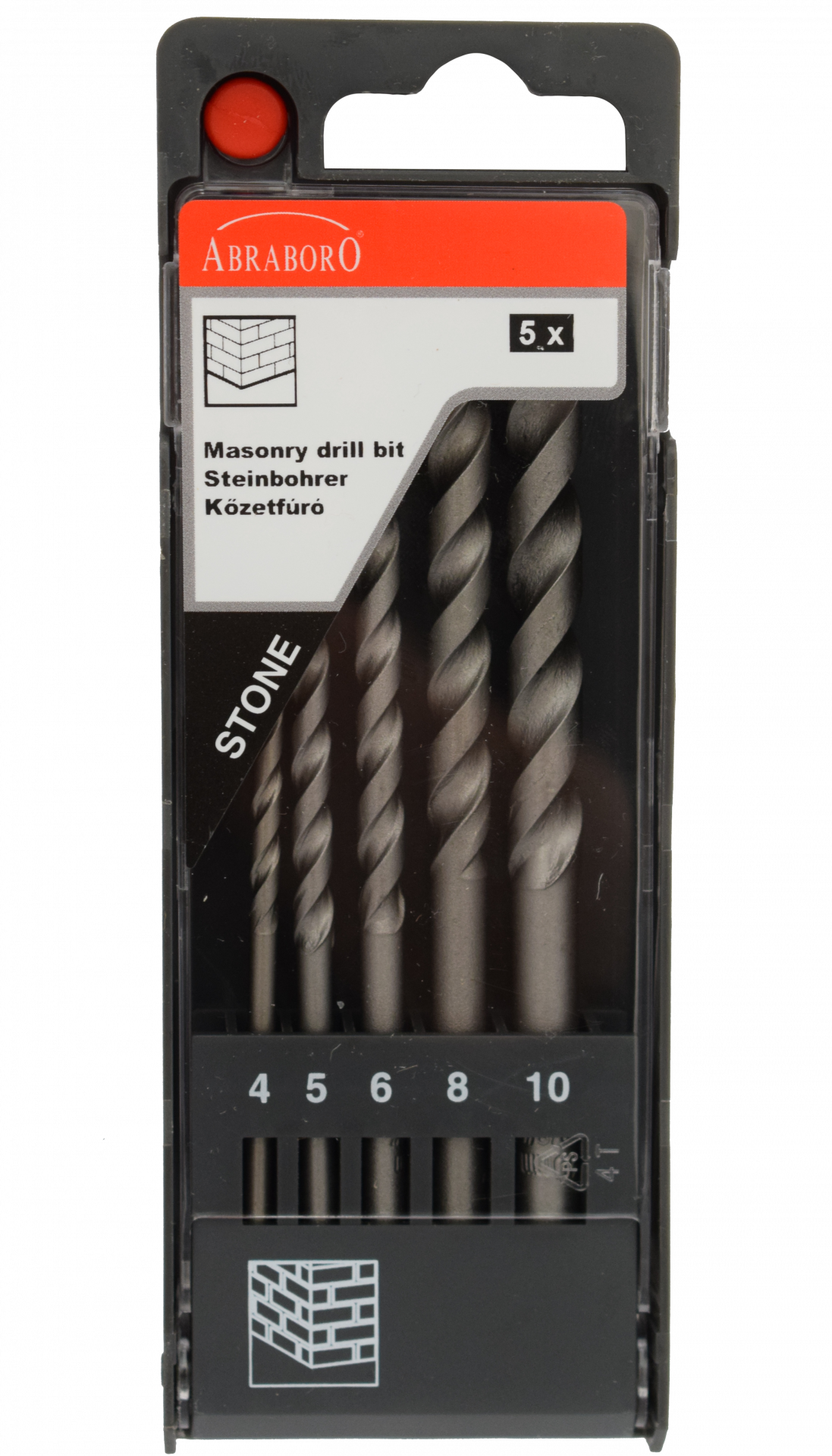 Abraboro 5 részes kőzetfúró készlet, műanyag dobozban