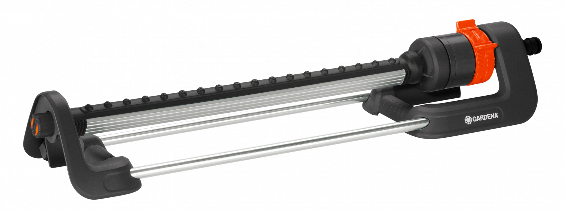 A négyszögesőztető szerszám nélkül összeszerelhető és a tömlő mindössze pár lépésben csatlakoztatható. Használja a csúszkát a hatótáv (8–18 méter) és az öntözés módjának beállításához. Választhatja az egyoldalas öntözést (bal vagy jobb) a két oldal egyidejű locsolása helyett. A öntözési szélesség mindig 16méter marad.