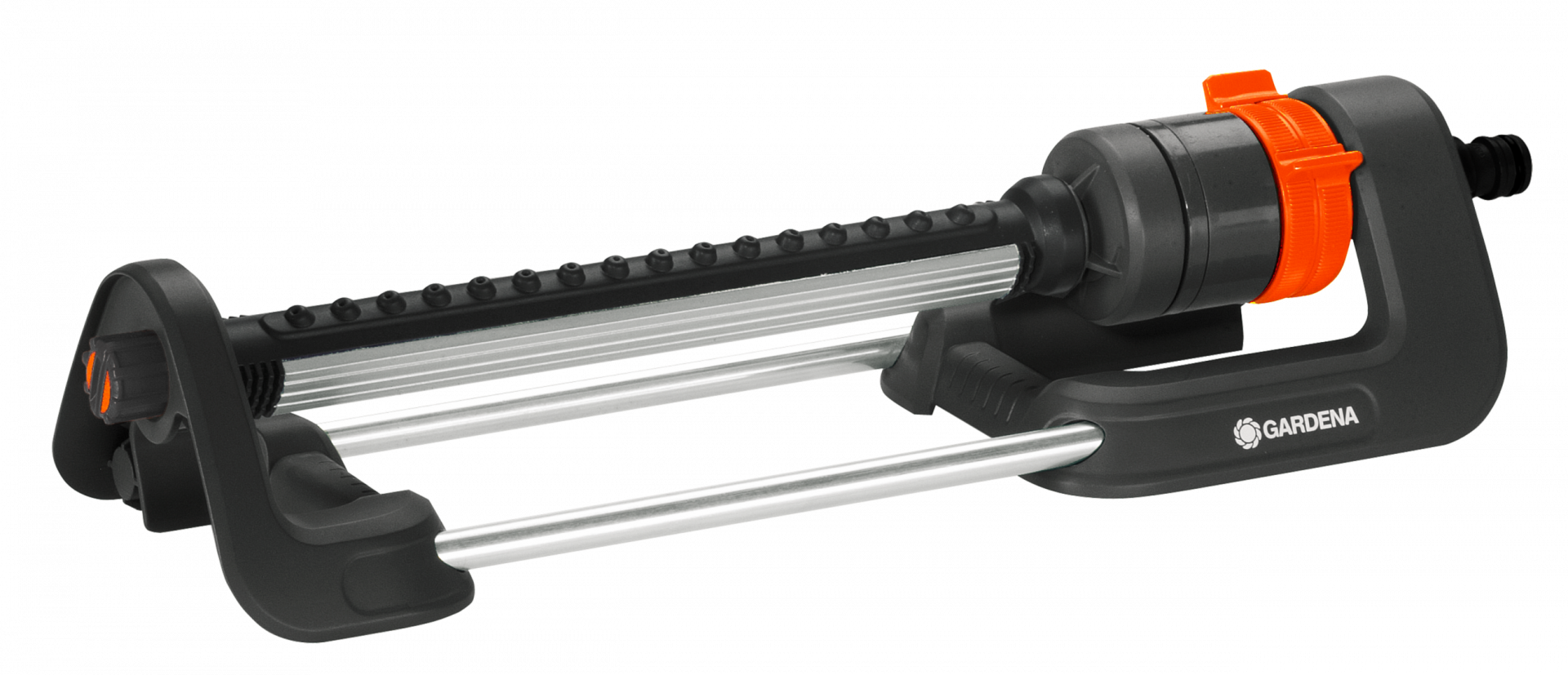 A négyszögesőztető szerszám nélkül összeszerelhető és a tömlő mindössze pár lépésben csatlakoztatható. Használja a csúszkát a hatótáv (8–18 méter) és az öntözés módjának beállításához. Választhatja az egyoldalas öntözést (bal vagy jobb) a két oldal egyidejű locsolása helyett. A öntözési szélesség mindig 14 méter marad.